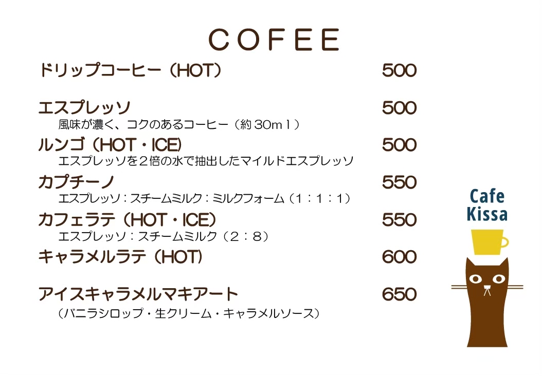 When it comes to drinks, cafe kissa’s selection is equally tempting. Sip on a fragrant アールグレイ (Earl Grey Tea) for JP¥500, or opt for a ロイヤルミルクティー (Royal Milk Tea), hot or iced, for just JP¥650. Each beverage is crafted with care, enhancing the overall dining experience.